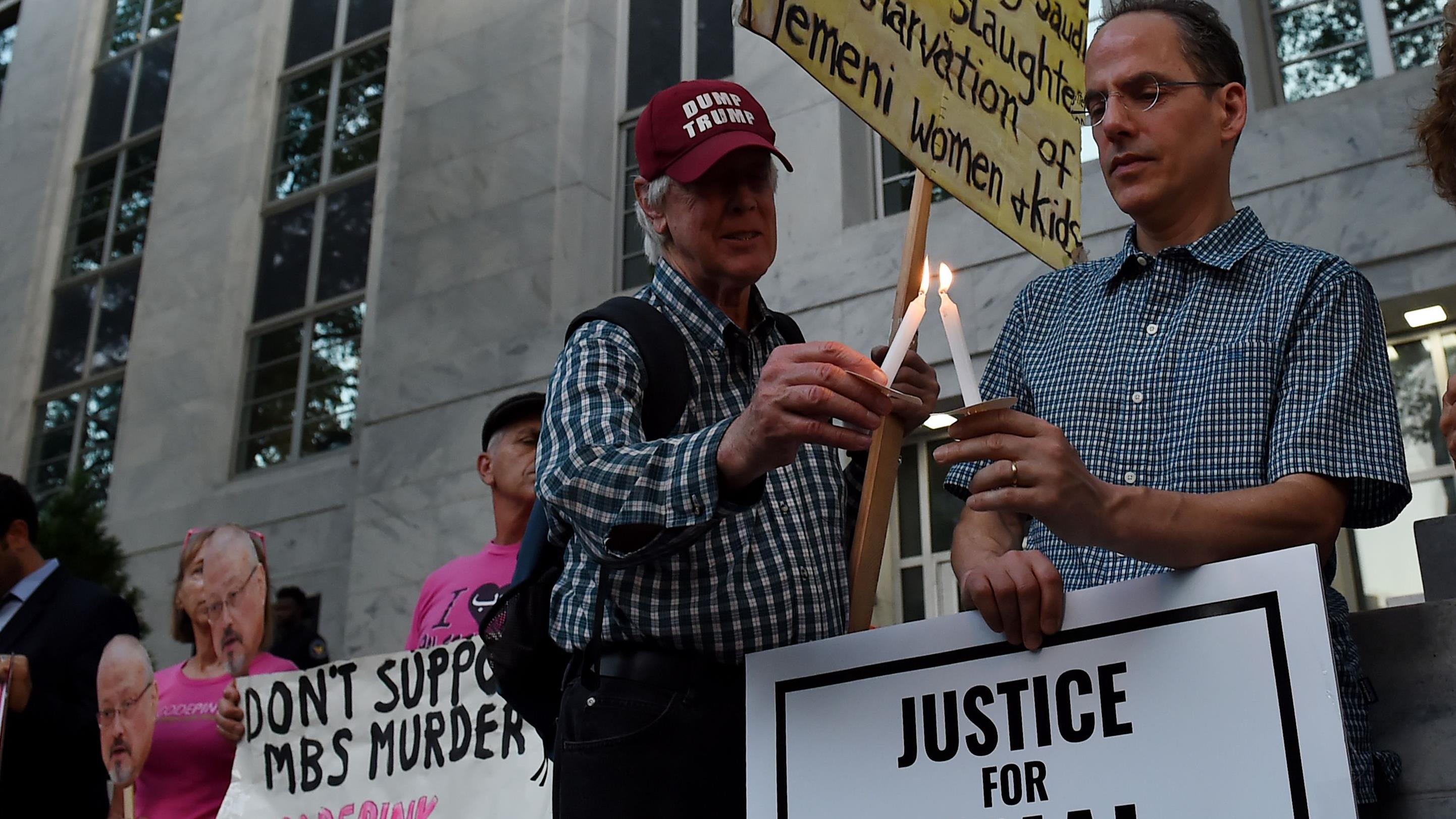Reunidos ante la sede diplomática de Arabia Saudí en Washington D.C., capital de EE.UU., los participantes en el acto conmemorativo solicitaron justicia para los responsables del asesinato de Khashoggi, columnista del diario estadounidense The Washington Post y crítico con la dinastía reinante en su país, los Al Saud.