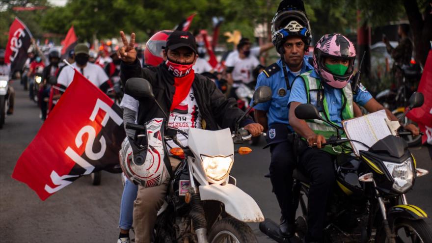 Los partidarios del Frente Sandinista de Liberación Nacional (FSLN), presidido por Daniel Ortega, con banderas rojas y negras, azules y blancas, circularon por las calles de la capital de Nicaragua para recordar esa memorable fecha.