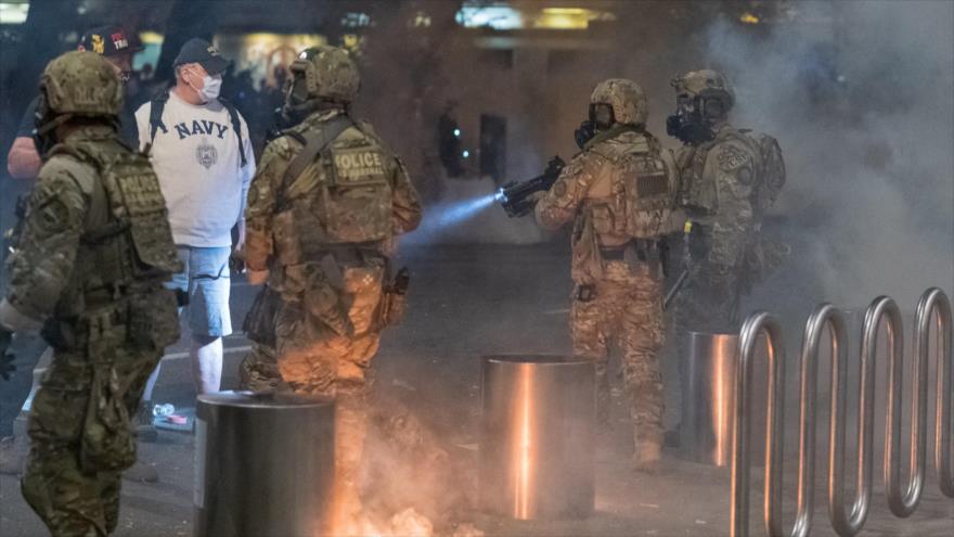 Las fuerzas federales, desplegadas desde principios del mes en Portland, la ciudad más grande del estado de Oregón (noroeste de EE.UU.), usan agresivas y polémicas tácticas contra los manifestantes que llevan más de 50 días manteniendo vivas las protestas por la justicia racial y social que se iniciaron en todo el país tras el asesinato del afrodescendiente George Floyd a manos de un agente de policía blanco.
