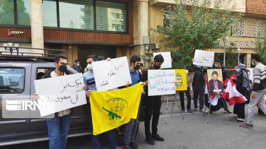 Los estudiantes iraníes junto con varios jóvenes libaneses protestaron por la agresión saudí contra el pueblo oprimido de Yemen.