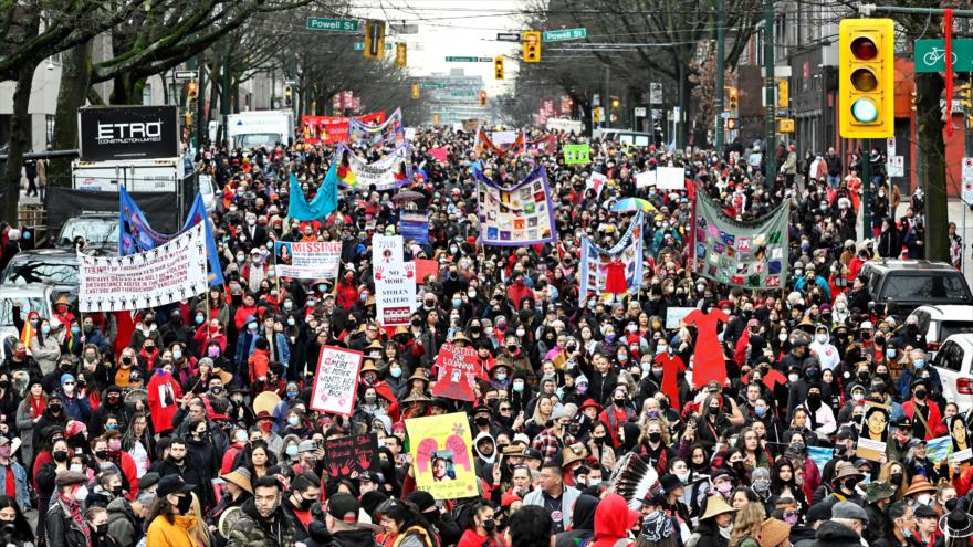 Familiares de las víctimas y activistas de las organizaciones defensoras de los derechos de las mujeres, marcharon por las calles de Downtown Eastside.