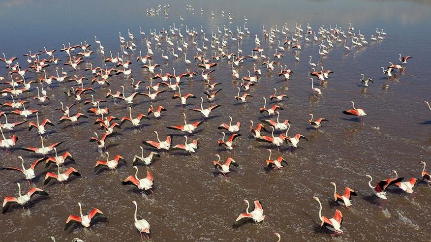 La especie de ave más importante en este lago es el flamenco, ya que su alimento principal se encuentra en abundancia en el agua de Maharlu.