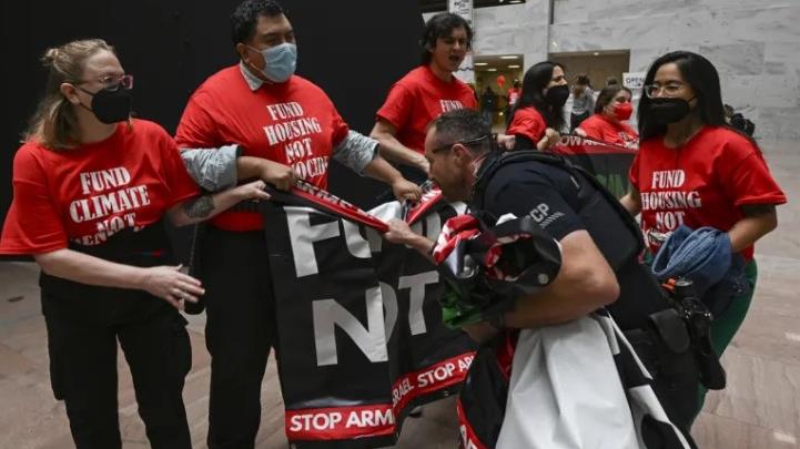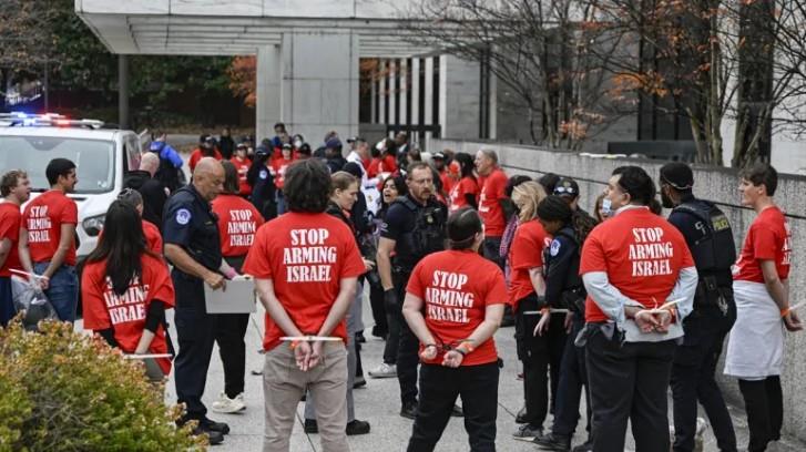 La protesta se produjo mientras el Senado se preparaba para votar sobre resoluciones “históricas” de desaprobación de un acuerdo de armas por 20 000 millones de dólares con el régimen de Israel, presentadas por el senador Bernie Sanders.