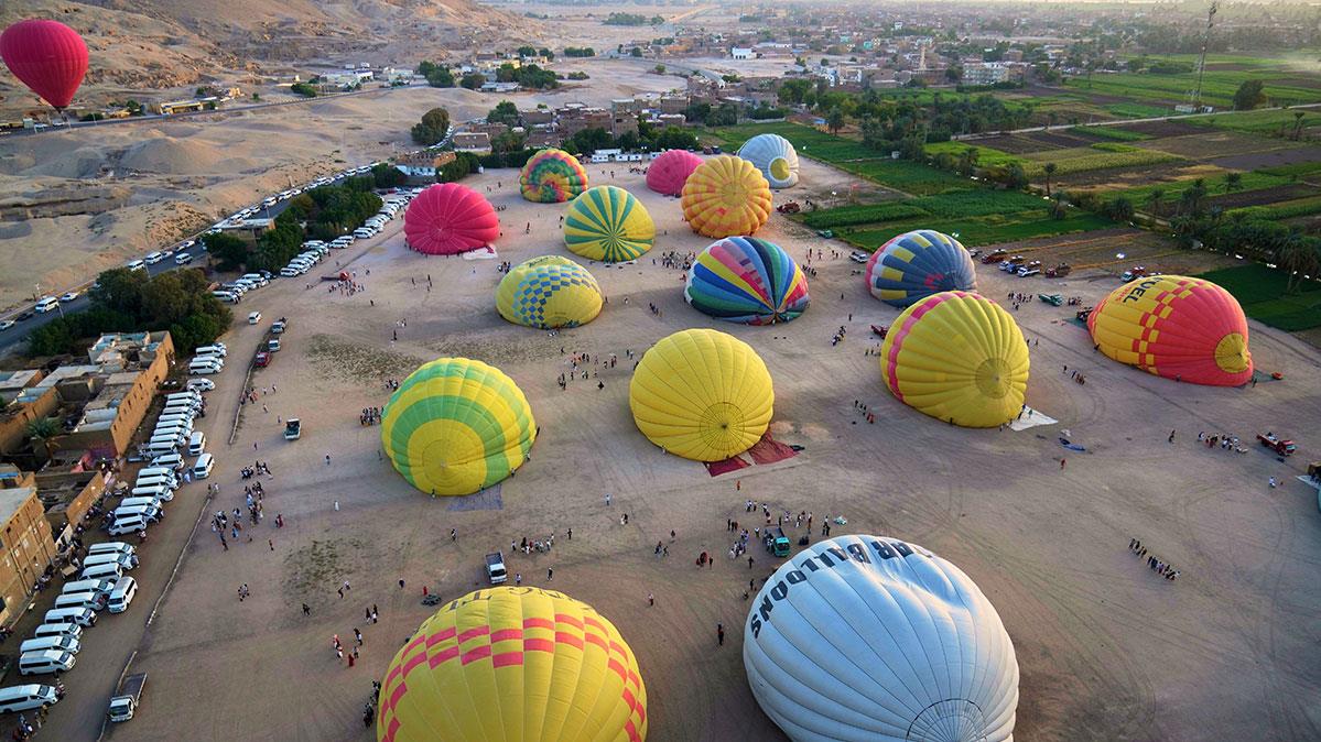 Volar en globo aerostático sobre Luxor, 510 kilómetros (320 millas) al sur de El Cairo, ofrece a los turistas paisajes espectaculares de los templos antiguos de la ciudad. Egipto es uno de los lugares más asequibles y místicos para surcar los cielos.
