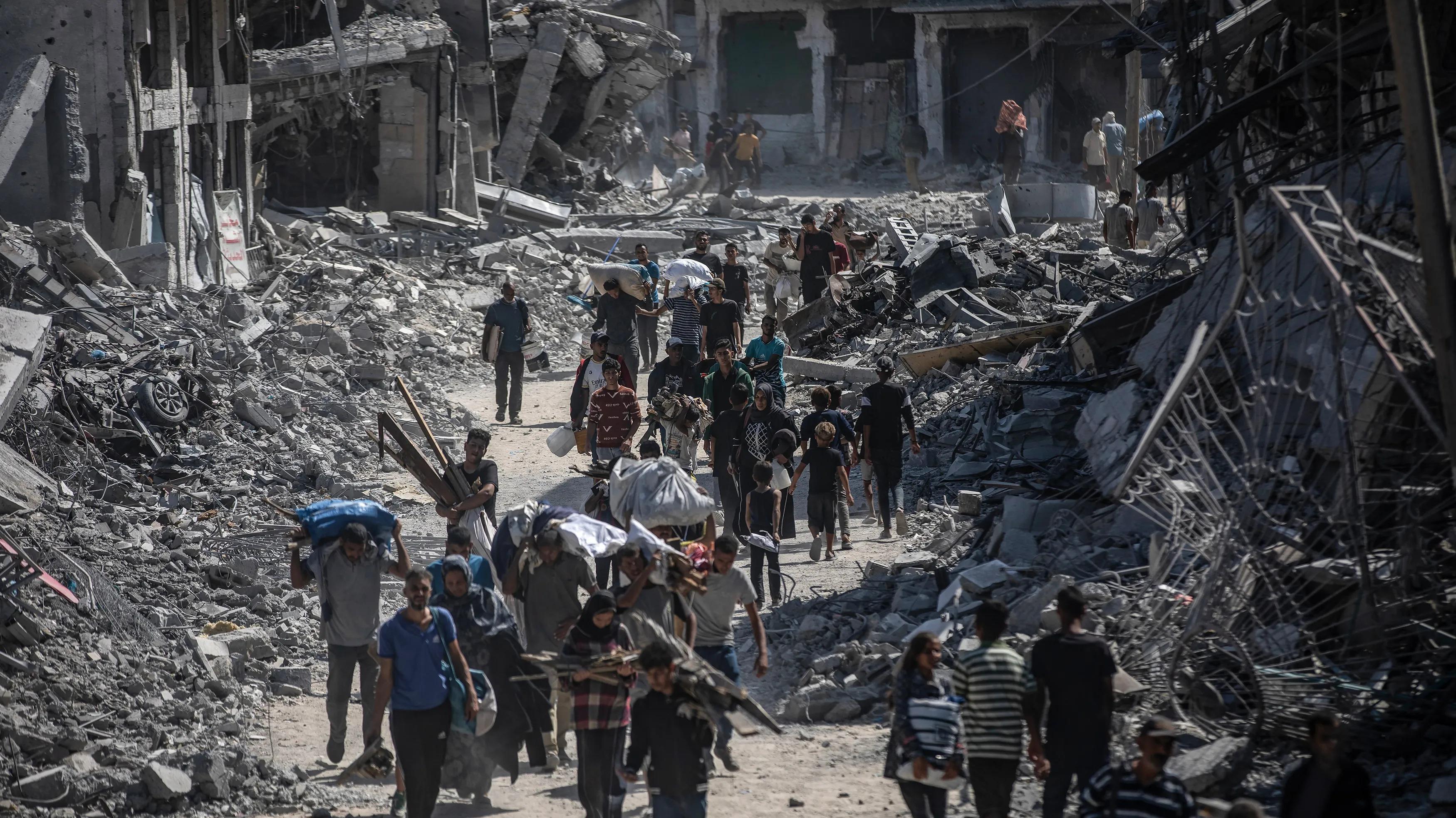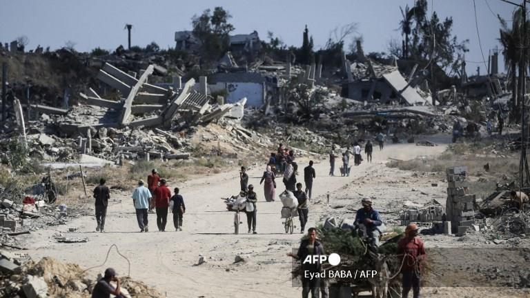 En el norte del campamento, en el área de Al-Zahra, familias desplazadas comenzaron a regresar entre los escombros. Caminan entre edificios colapsados, buscando rastros de sus antiguos hogares, mientras enfrentan una realidad marcada por la destrucción total y la escasez extrema.