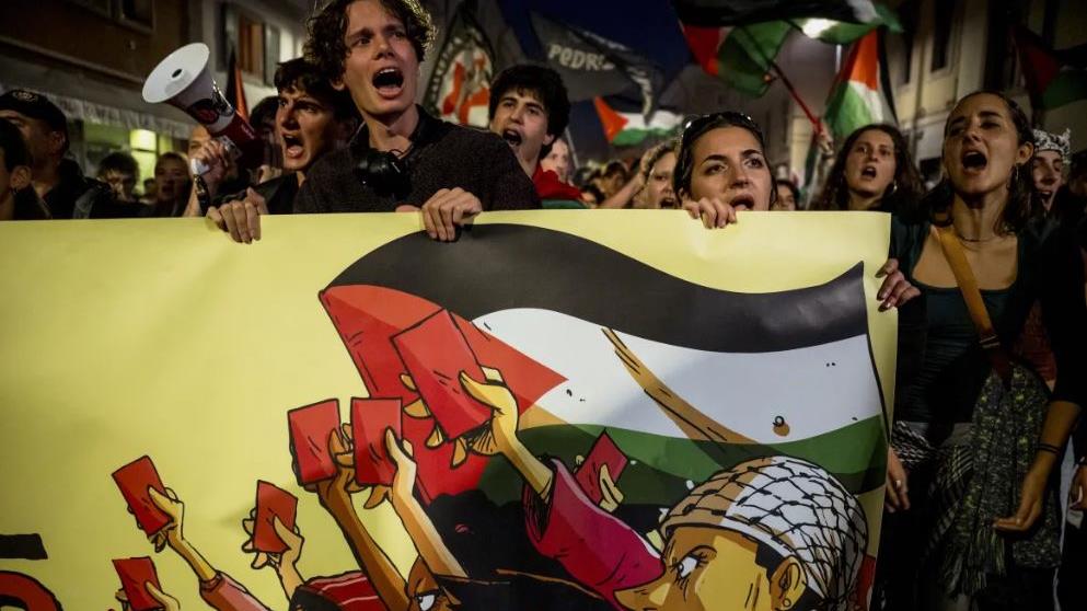 Pese al reciente acuerdo de alto el fuego en Gaza y al intercambio de prisioneros entre Israel y HAMAS, unos 10 000 manifestantes se congregaron en el noreste del país, donde el estadio Bluenergy fue fuertemente resguardado con estrictas medidas de seguridad, que incluyeron barreras de hormigón y detectores de metales.