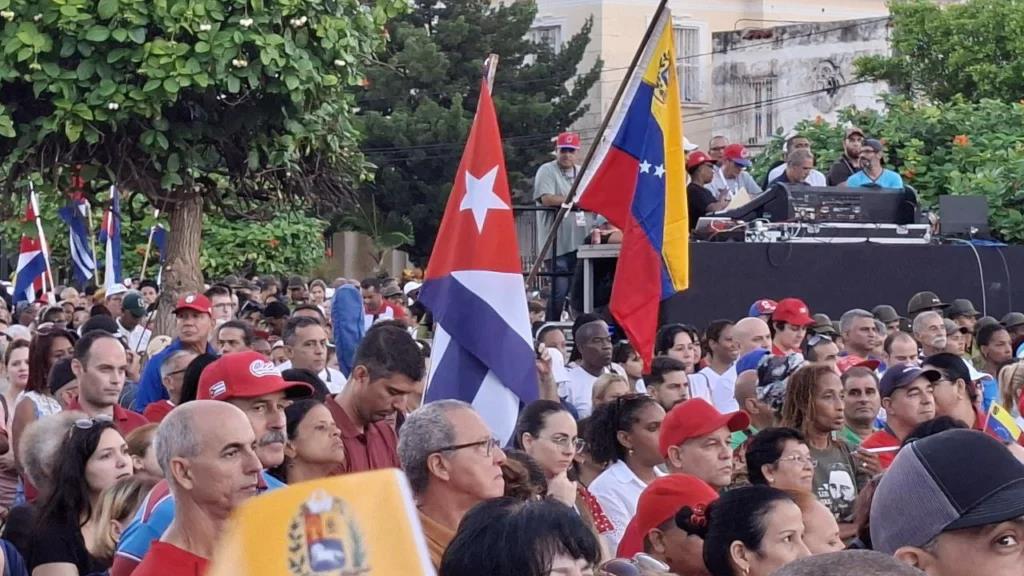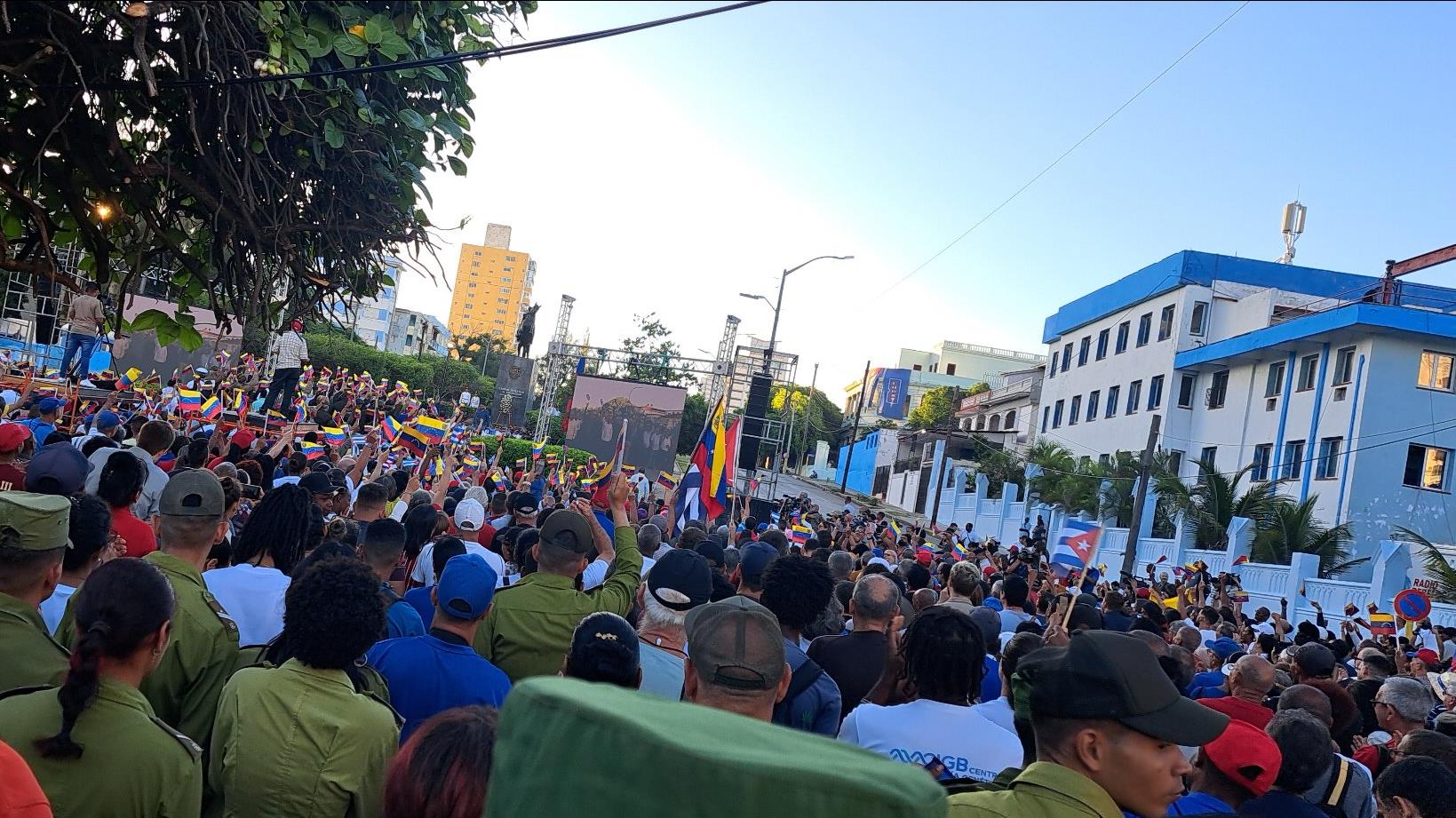 Ante la creciente amenaza de una posible acción militar de Estados Unidos contra Venezuela, más de 50 000 ciudadanos cubanos se reunieron este viernes en la Avenida de los Presidentes, frente a la estatua de Simón Bolívar, para expresar su solidaridad con la República Bolivariana de Venezuela.