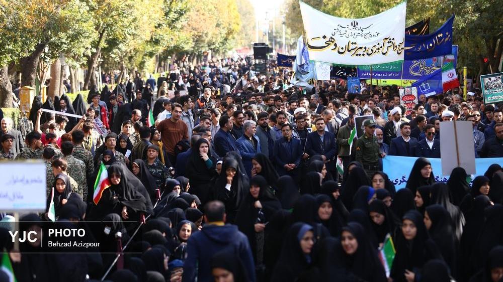 Irán conmemoró este martes una efeméride con multitudinarias movilizaciones en Teherán, Isfahán, Mashhad, Qom y otras cerca de 900 ciudades. Las marchas recordaron el día en que estudiantes revolucionarios desafiaron, hace 46 años, la hegemonía de Estados Unidos.