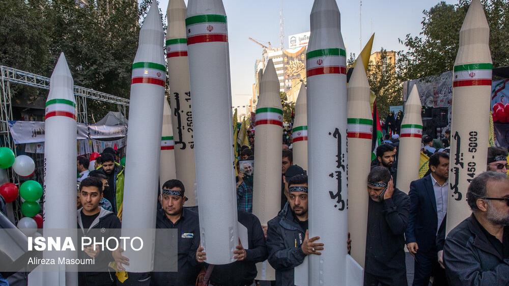 A lo largo del recorrido, se exhibieron réplicas simbólicas de misiles y centrifugadoras iraníes, en un gesto que resaltó tanto el legado de resistencia como los avances tecnológicos del país persa, pese a las severas sanciones que pesan sobre la República Islámica.