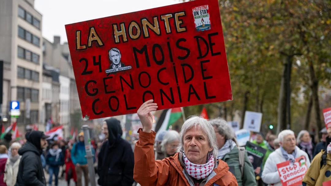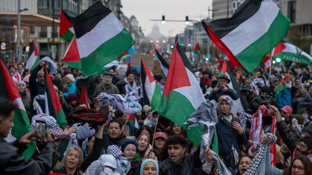Miles de manifestantes inundaron las calles de Bruselas el domingo 16 de noviembre para expresar su condena enérgica a la campaña militar de Israel en Gaza. Los participantes marcharon por el centro de la ciudad, ondeando banderas palestinas. Imágenes aéreas capturaron la magnitud de la protesta, mientras las multitudes se movían al unísono, portando pancartas que denunciaban la violencia en curso contra el pueblo palestino.