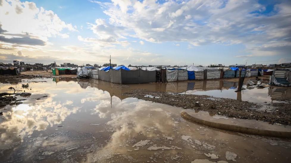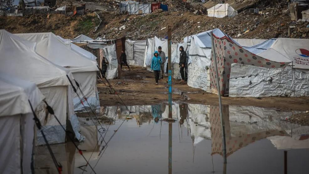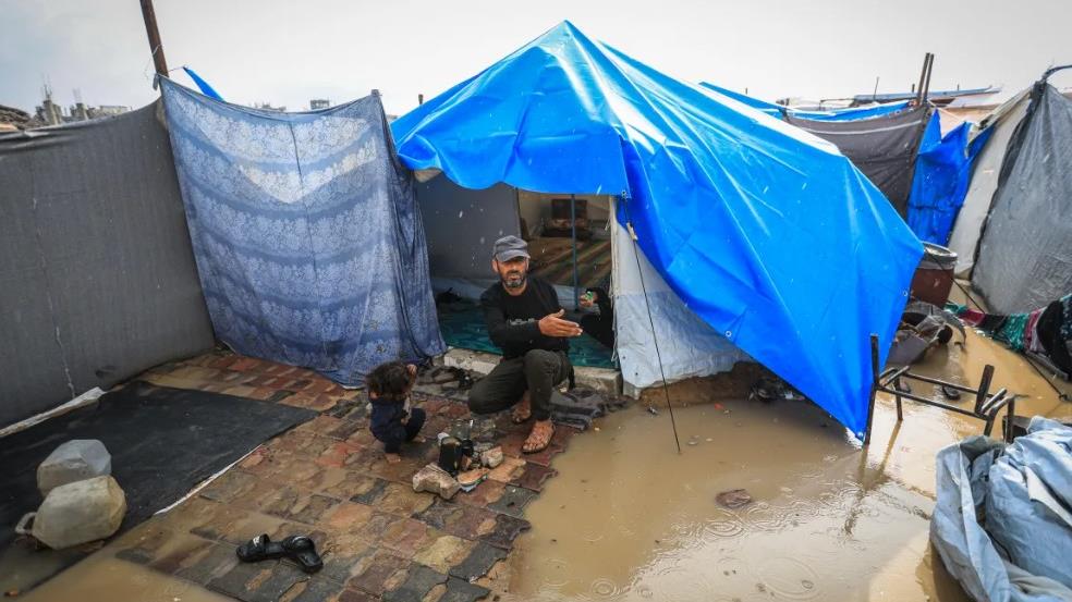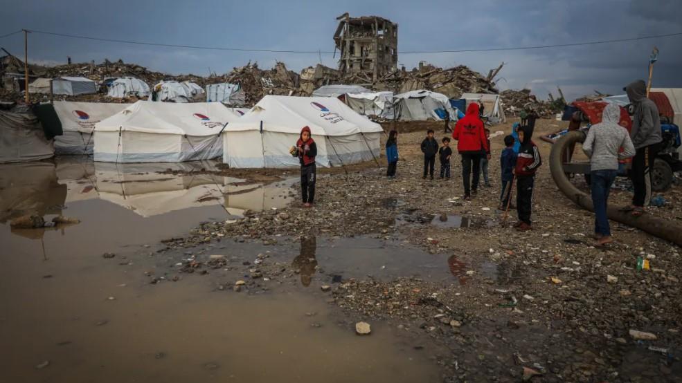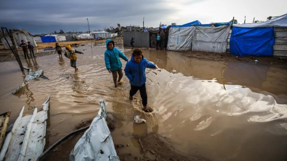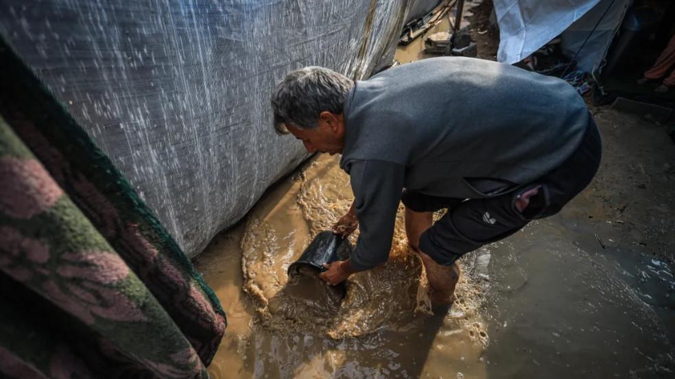 Las intensas precipitaciones, previas a la tormenta Byron, comenzaron antes del amanecer del miércoles, sumergiendo miles de tiendas en distintas zonas del territorio sitiado y bombardeado.