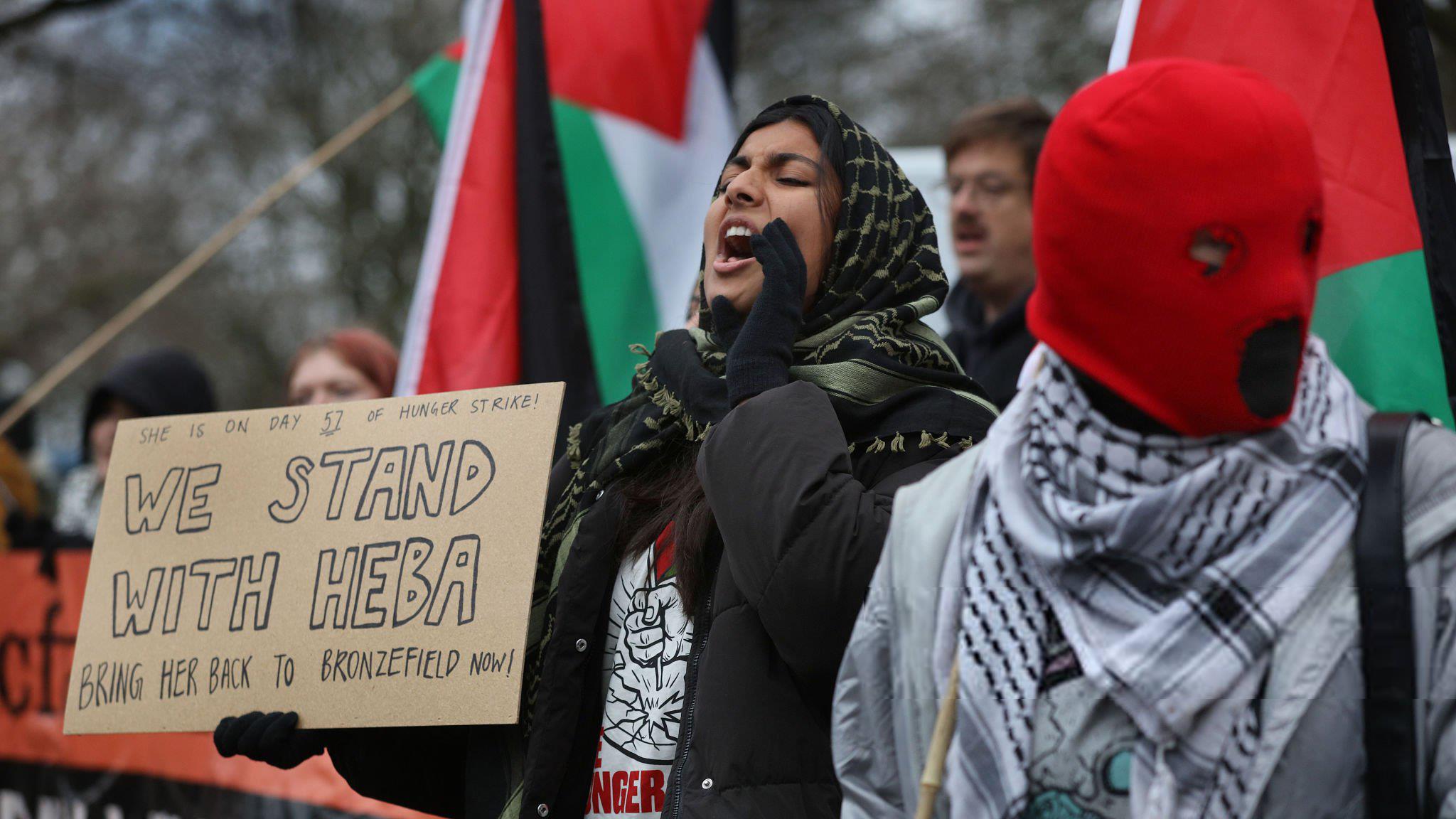 Los manifestantes reclamaron su traslado a la prisión HMP Bronzefield para poder estar cerca de su familia, la concesión inmediata de la libertad bajo fianza y un juicio justo. Asimismo, exigieron el fin de la censura, la desproscripción del grupo y el cierre de las sedes británicas del fabricante de armas israelí Elbit Systems.