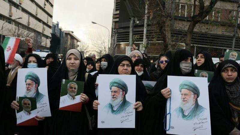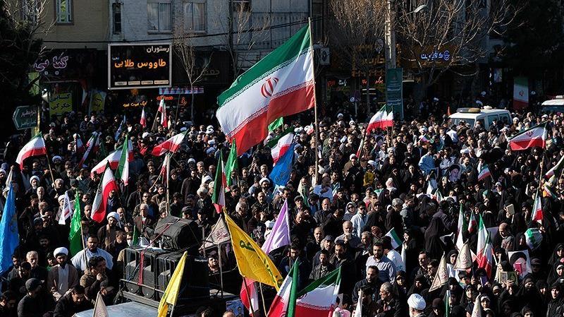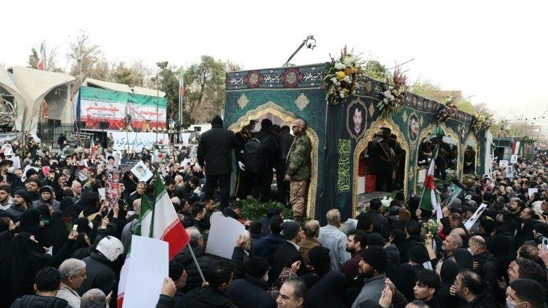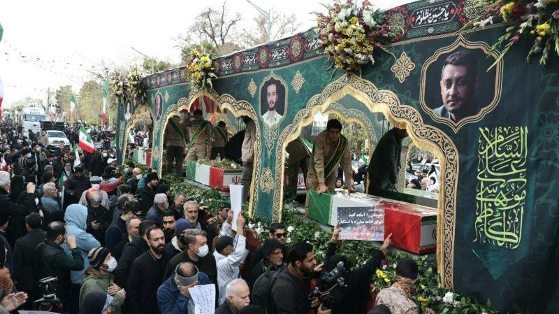 Una multitud masiva ha acompañado el funeral de los inocentes mártires defensores de la seguridad en Teherán, asesinados durante los recientes disturbios, 14 de enero de 2026.