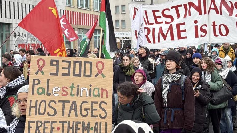 En la movilización se observaron pancartas con lemas como “Boicot a Israel”, junto con las banderas de los países mencionados.