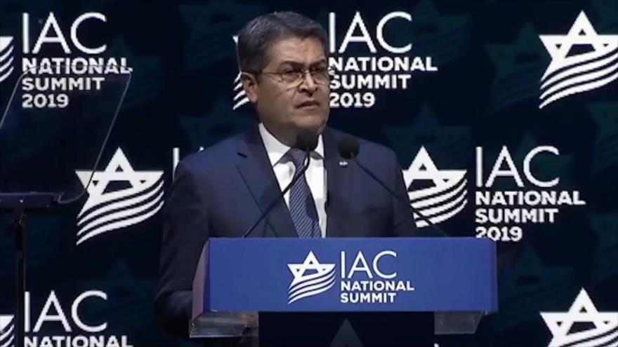 Juan Orlando Hernández, el presidente de Honduras, da mayores pasos en su odio hacia los países islámicos que resisten las embestidas del régimen de Israel. Ahora en una alocución en un congreso israelí-estadounidense propone una alianza militar entre Honduras, Estados Unidos y el régimen de Tel Aviv, según el mandatario centroamericano para hacerle frente a enemigos comunes en la región.