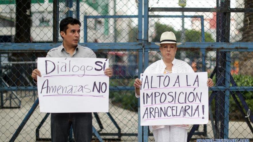 Los enfurecidos mostrando pancartas con el mensaje: “Diálogo sí, amenazas no”, expresaron su preocupación por la aplicación de aranceles a los productos mexicanos, lo que a su juicio, disminuiría las ventas de mercancías mexicanas en Estados Unidos, causando desempleo y generando más migración al país norteamericano.