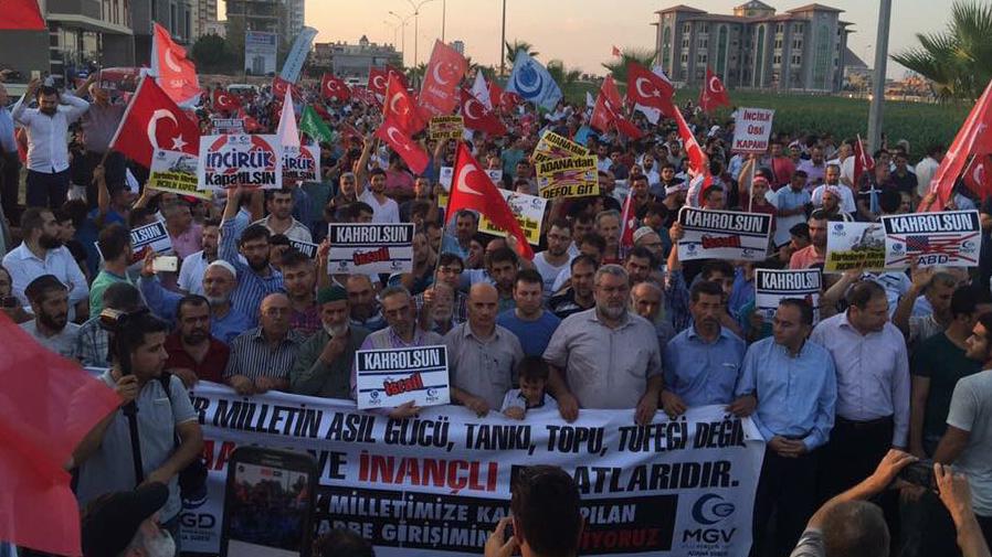 En reacción, las autoridades turcas desplegaron un importante dispositivo policial antidisturbios en torno a la base de Incirlik, ante una multitud que coreaba consignas contra EE.UU. e Israel, e incluso llegó a quemar las banderas de ambos.