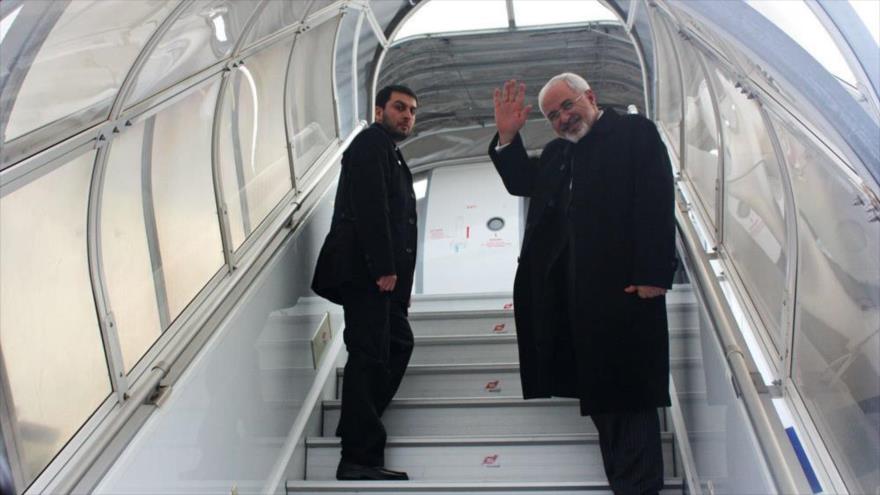 “Decenas de funcionarios de los campos económico y financiero, y personas pertenecientes a los sectores estatal y privado acompañan a Zarif durante su viaje”, detalló Qasemi.
