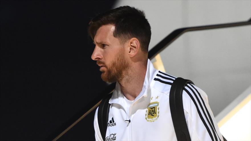 • El delantero argentino Lionel Messi llega a Moscú junto con la selección de fútbol de Argentina para la Copa Mundial de Rusia, 9 de junio de 2018.