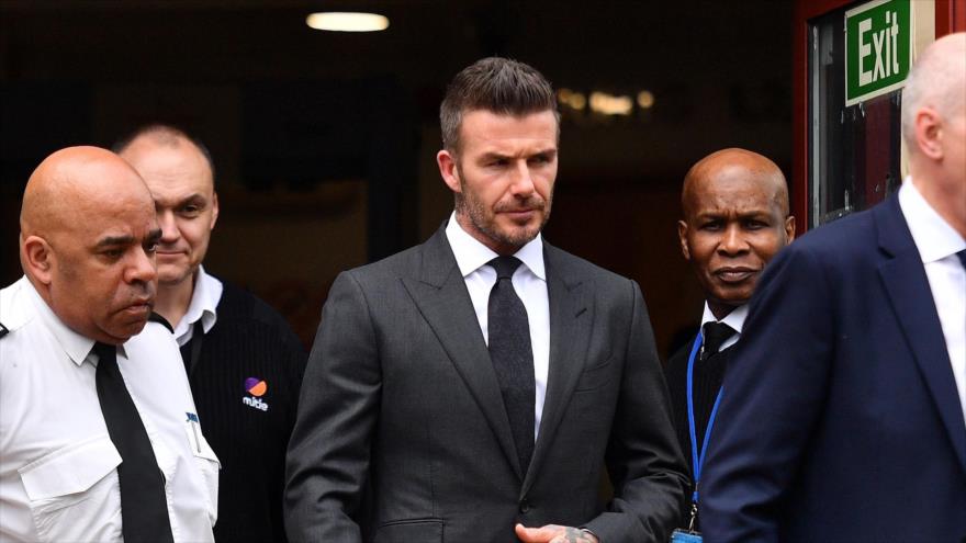 • El exfutbolista británico David Beckham (C) deja el Tribunal de Magistrados de Bromley en Bromley, al sureste de Londres, 9 de mayo de 2019, (Foto: AFP)
