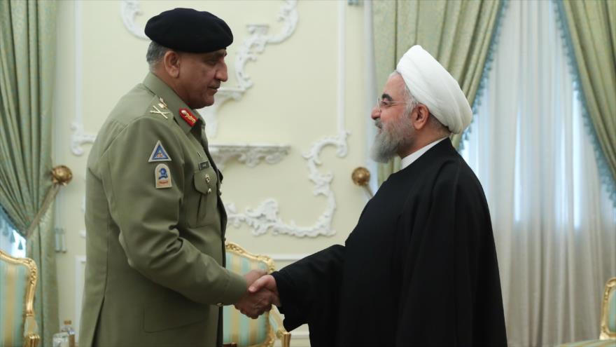 El presidente de Irán, Hasan Rohani, se ha reunido este martes en Teherán (capital persa) con el jefe del Estado Mayor del Ejército de Paquistán, el general Qamar Yaved Bajwa, a quien ha manifestado el interés de Teherán en fortalecer las cooperaciones con Islamabad en distintas áreas, como la económica y la comercial, así como en la seguridad de las fronteras que comparten ambas naciones.
