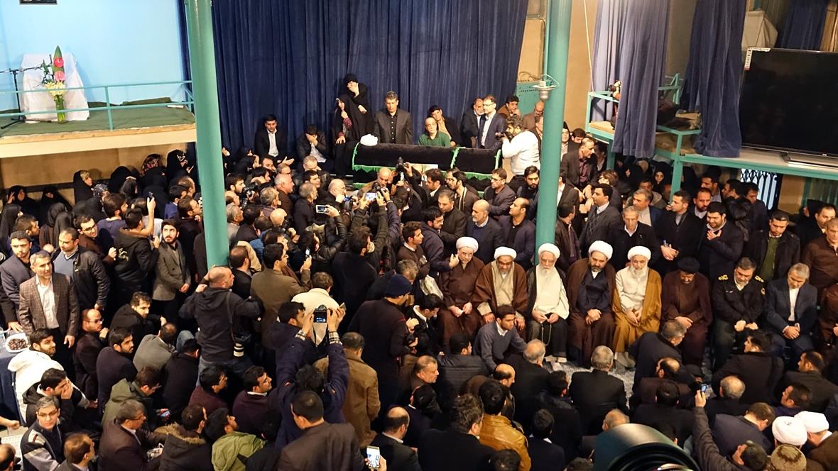 La gente se reúne en la mezquita de Yamaran en Teherán para expresar su pésame por la muerte del difunto presidente del Consejo de Discernimiento del Sistema de la República Islámica de Irán, ayatolá Ali Akbar Hashemi Rafsanyani, 8 de enero de 2017.