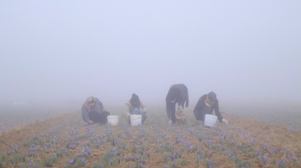 El rendimiento promedio en fincas bien cuidadas es de 2,4 kilogramos de azafrán seco por hectárea, y más de 23 500 familias agricultoras en Jorasán del Sur dependen del azafrán para su sustento.