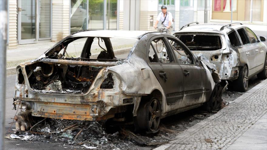 Los manifestantes arrojaron botellas, adoquines y fuegos artificiales, destruyeron vehículos y atacaron a los agentes, uno de los cuales tuvo que ser hospitalizado, explicó la Policía alemana en un comunicado.