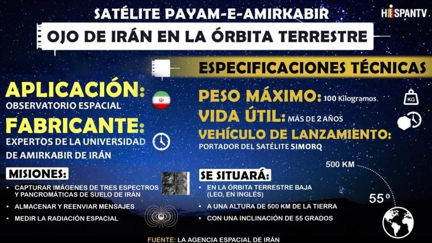 Irán es una de las 11 naciones del mundo capaz de diseñar, construir y lanzar satélites al espacio. De hecho, la Agencia Espacial de Irán proyecta construir satélites de imágenes con una precisión de un metro para 2025, año en que finaliza el actual Programa de Visión Nacional de Irán.