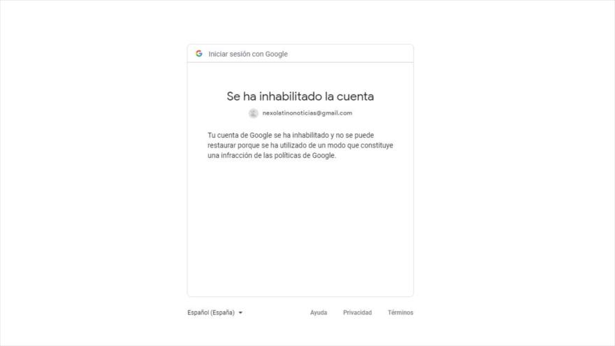 La sección de comentarios de HispanTV estuvo inaccesible temporalmente al equipo de redacción debido a la inhabilitación de la cuenta de Google de la cadena.