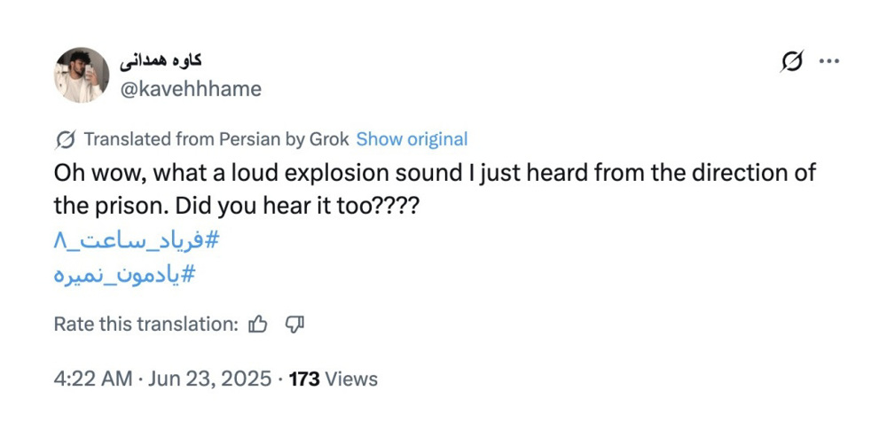 En los minutos posteriores al lanzamiento del vídeo, otras cuentas de PRISONBREAK añadieron sus propias contribuciones, afirmando haber escuchado las explosiones en Evin.