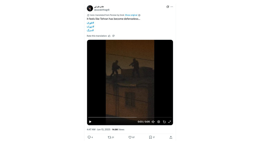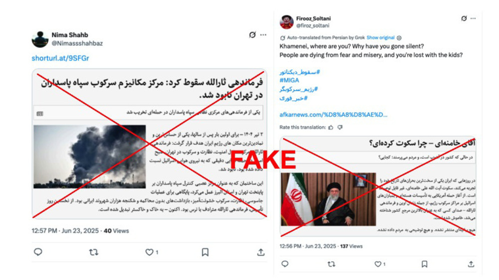 El primero pretendía resumir la guerra de doce días entre Israel e Irán, respaldada por Estados Unidos, subrayando supuestas “graves congestiones vehiculares, escasez de combustible” y sugiriendo que los funcionarios iraníes habían abandonado el gobierno.