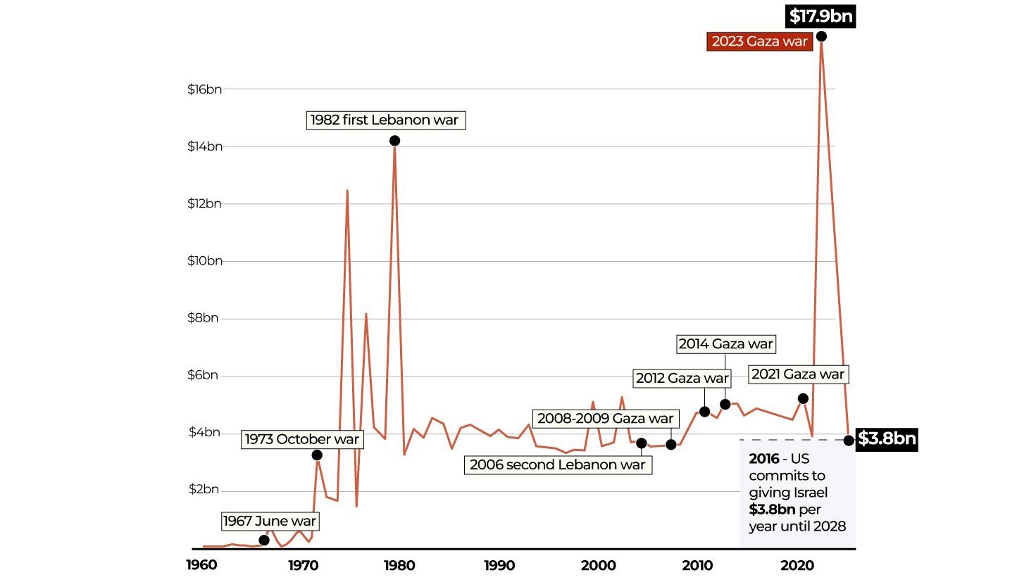 En 2016, el gobierno de Barack Obama firmó un acuerdo de diez años comprometiendo 3.8 mil millones de dólares anuales a Israel hasta 2028, garantizando una base constante de apoyo incluso en tiempos sin conflicto abierto.