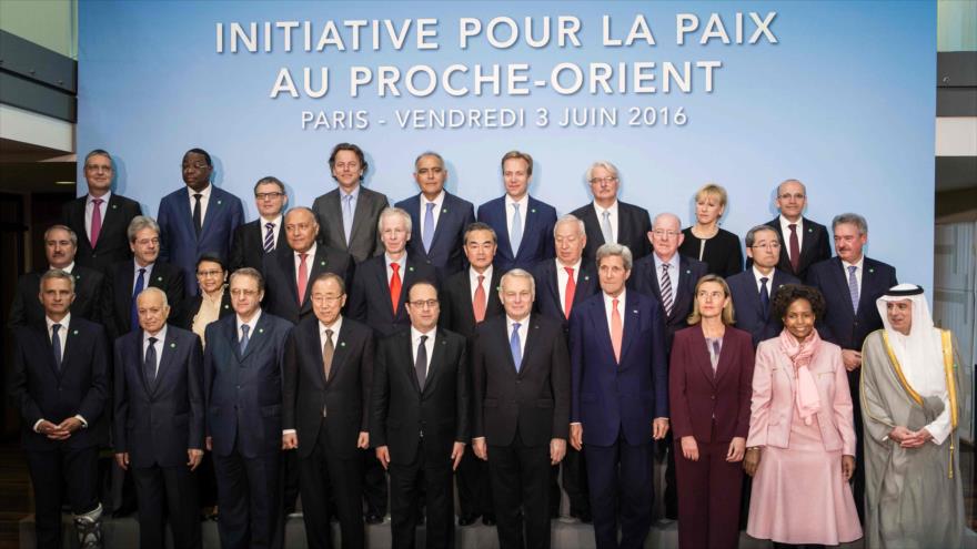 Los jefes de la Diplomacia y representantes diplomáticos de 26 países —incluidos los miembros permanentes del Consejo de Seguridad de las Naciones Unidas (CSNU), los dirigentes de las Naciones Unidas, la Liga Árabe (LA) y la Unión Europea (UE)— se reunieron en París, en una cita que establece el marco para la próxima iniciativa liderada por Francia para reactivar las negociaciones entre los palestinos y el régimen israelí.