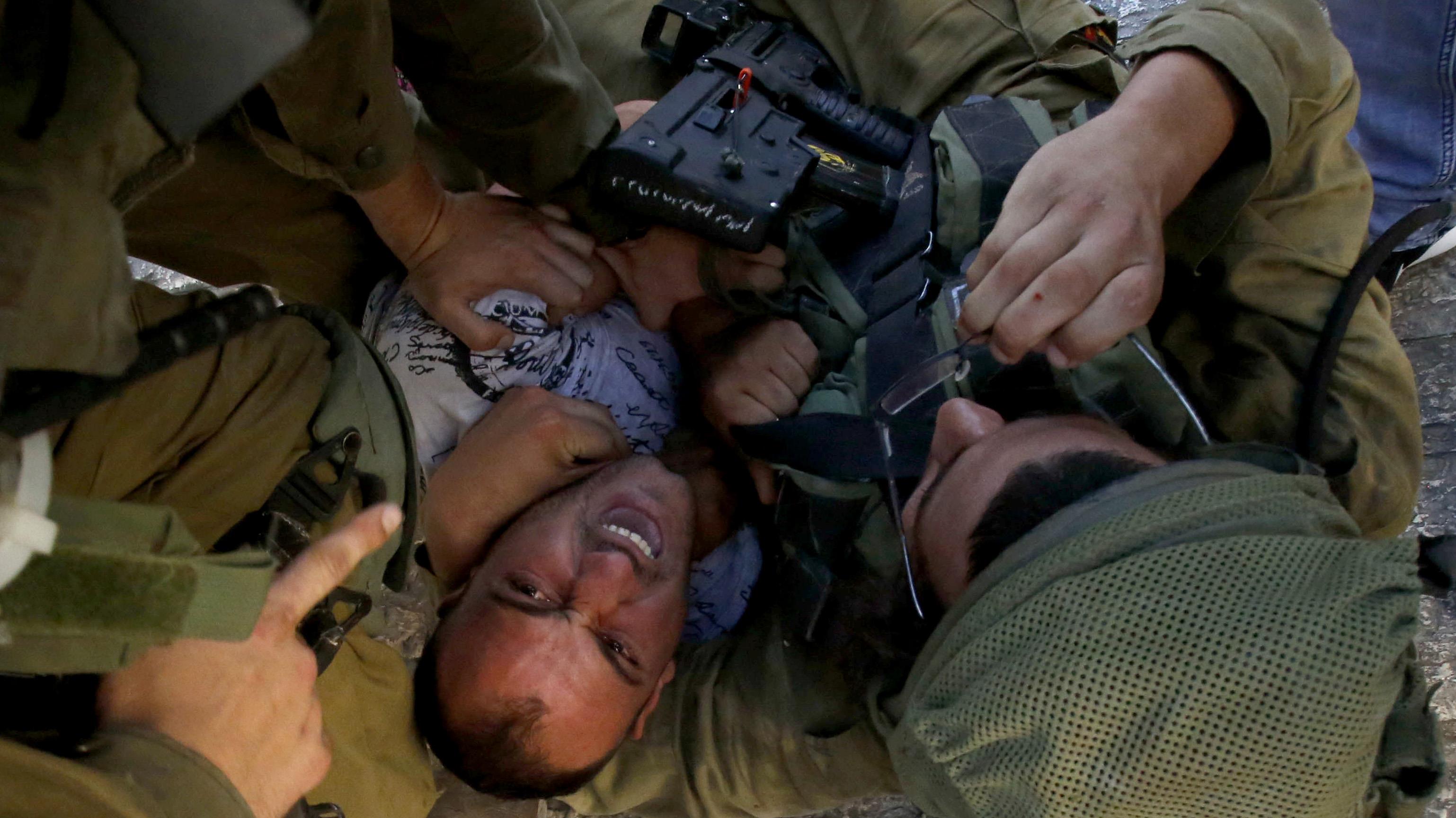 En las imágenes se ve a al menos cinco soldados israelíes que rodean a un palestino en la ciudad cisjordana. Un soldado patea al joven, mientras otro le mantiene la cabeza pegada al suelo con la rodilla.