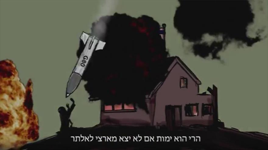 los cohetes los alcanzarán, sionistas, no importa dónde estén (...) Sin duda morirás si no dejas mi país", se escucha en el vídeo de animación musical de HAMAS.