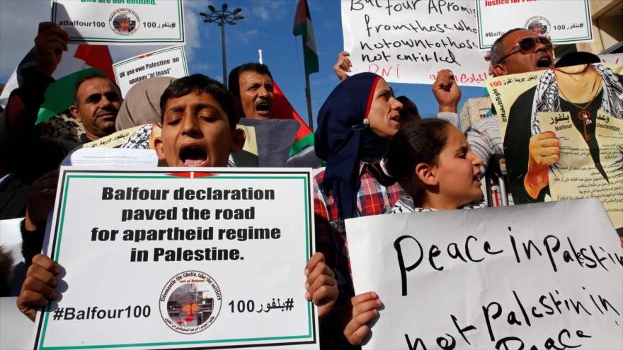 Los palestinos exigen disculpas a Londres por permitir la usurpación y colonización de su tierra por los sionistas. Con esta premisa, miles de personas han marchado en Ramalá, Al-Quds (Jerusalén) y otros puntos de la ocupada Cisjordania, así como en la Franja de Gaza, para exigir a Londres que se disculpe públicamente por las décadas de sufrimiento causadas al pueblo de Palestina.