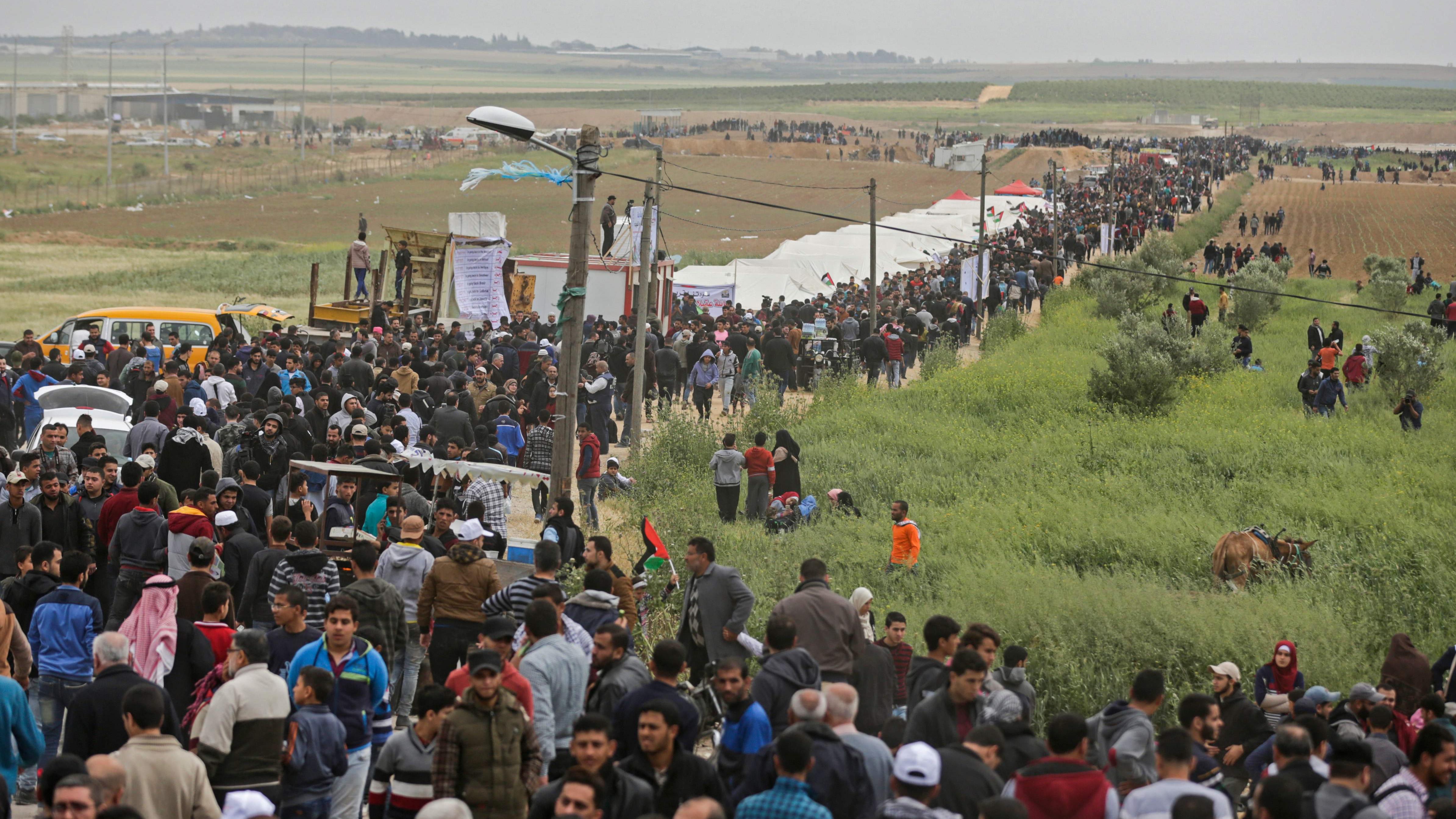 El ejército israelí cifra en 20.000 a los palestinos que están participando en las protestas de Gaza, en seis ubicaciones principales a lo largo de la valla que rodea el enclave y que lo separa de los territorios ocupados. Desde antes de empezar las protestas, Israel había desplegado francotiradores y reforzado su presencia militar en la zona, preparándose para abrir fuego contra los civiles.
