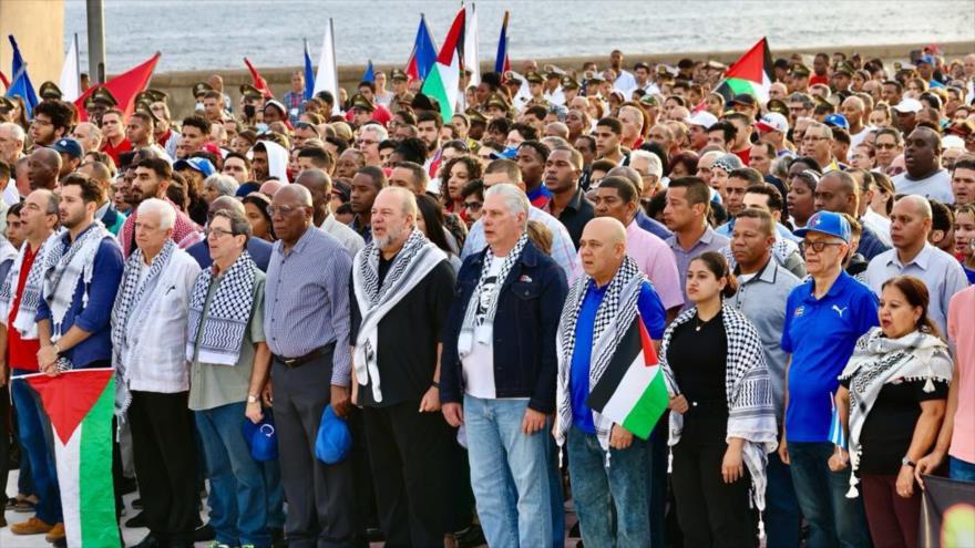 “La liberación y la emancipación de los pueblos” es “una causa histórica cubana”, por eso, es que el pueblo cubano organizó las manifestaciones, como la congregación del sábado frente a la embajada estadounidense en La Habana, la capital del país caribeño, para exigir el cese del fuego, exigir que se detenga la masacre y la guerra del exterminio contra un pueblo que vive más de 70 años una ocupación ilegal, ha explicado respecto al apoyo del pueblo cubano a Palestina.