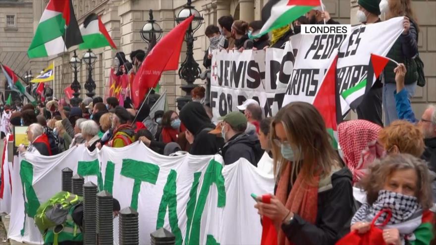 Las manifestaciones iniciaron en Londres, la capital del Reino Unido, donde centenares de ciudadanos pidieron el fin del genocidio lo antes posible.