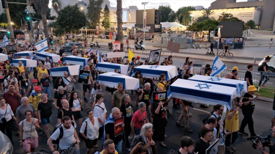Este jueves, en otra protesta que se suma a otras realizadas durante la semana con el mismo objetivo, los manifestantes exigieron al primer ministro israelí, Benjamín Netanyahu, a llegar a un acuerdo con el Movimiento de Resistencia Islámica de Palestina (HAMAS) que permita la liberación de los retenidos en Gaza tras más de 10 meses de guerra.