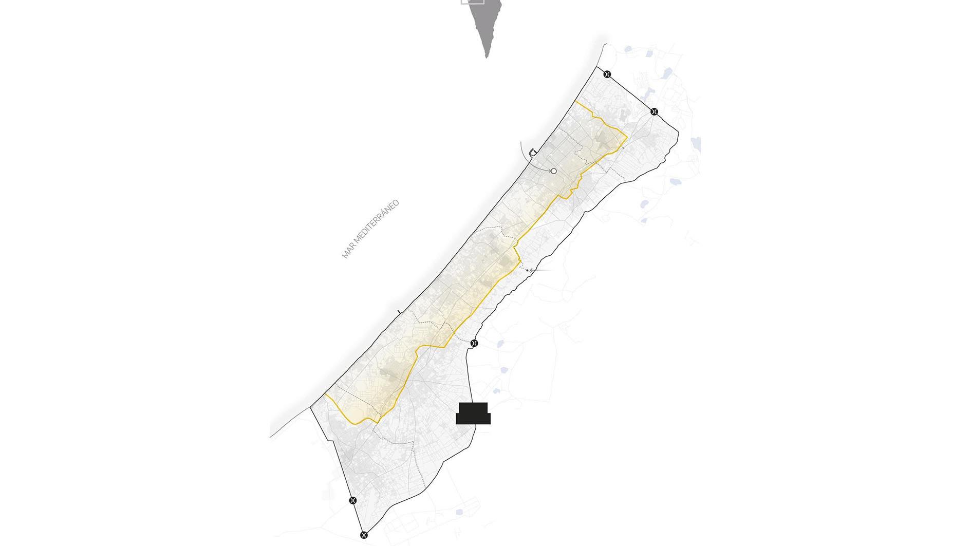El perímetro entre esta línea y la zona limítrofe entre Gaza y los territorios ocupados permanece bajo control militar israelí y abarca algo más del 50 % de la Franja.