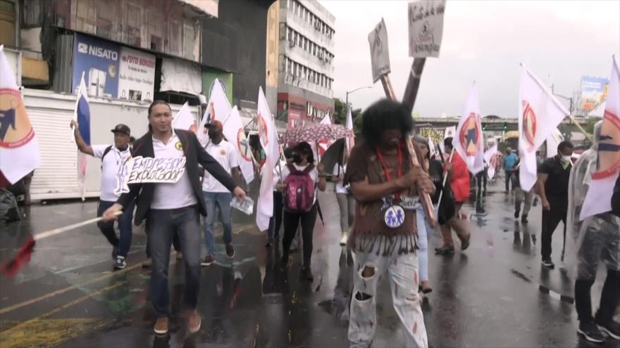 A pesar de la lluvia copiosa, miles de panameños marcharon este martes 28 de junio a la presidencia de la república para exigir políticas concretas enfocadas en la disminución en el precio de los medicamentos, alimentos y el combustible.