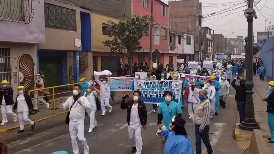 Los indignados precisan que un hospital que atiende a ocho distritos de la ciudad se ha “derrumbado por completo” a medida que la pandemia afecta a la infraestructura de salud de la nación andina. Además, el personal médico exige que se les dé seguros de salud, equipos de protección y mejores condiciones ante la COVID-19.