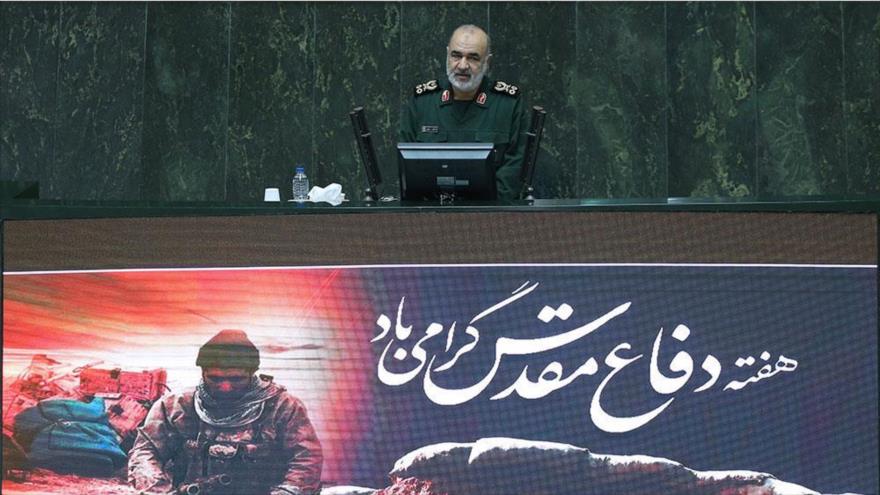 En otra parte de sus declaraciones, el comandante en jefe del CGRI ha condenado la guerra económica lanzada por la Administración estadounidense contra la nación persa para luego asegurar que los iraníes nunca se arrodillarán ante los enemigos y con resistencia superarán los problemas.