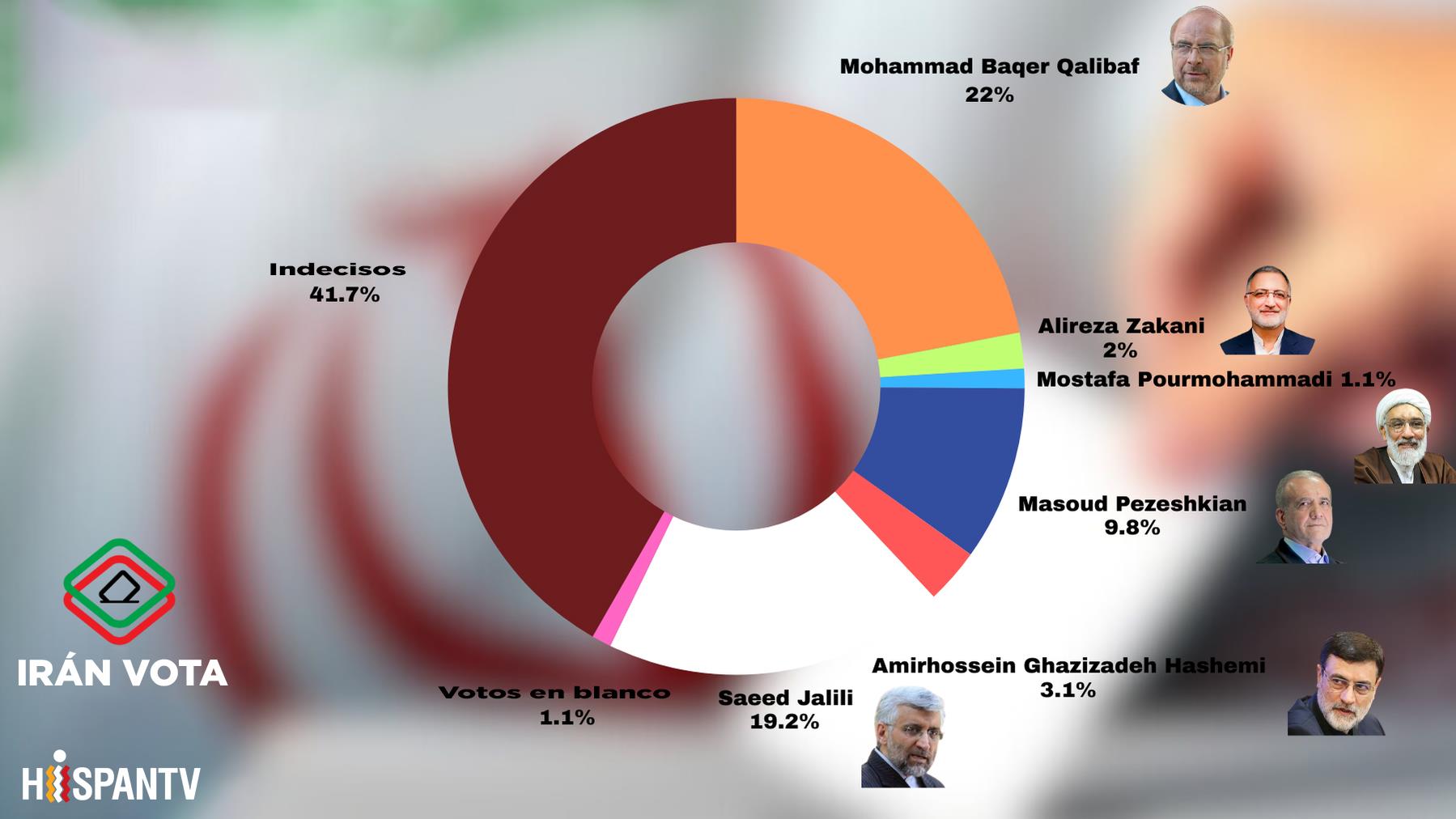 En otra encuesta entre quienes dijeron que definitivamente o probablemente votarían el 28 de junio, Qalibaf volvió a emerger como claro favorito, con un 20,5 por ciento de apoyo.