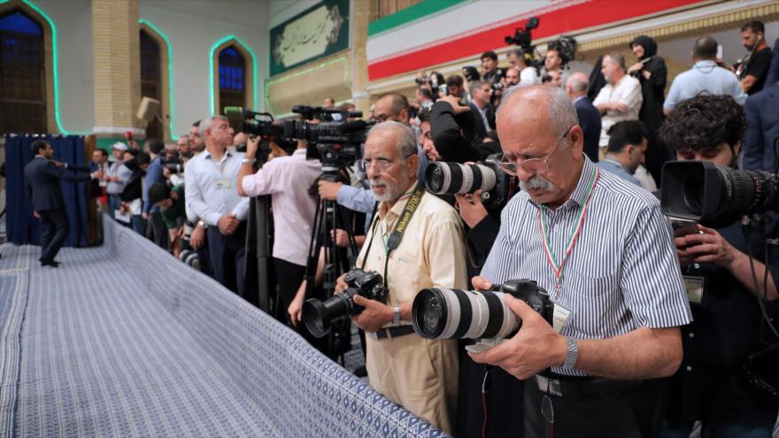 Los representantes y reporteros de los medios internacionales acudieron la mañana de este viernes al Huseiniya de Imam Jomeini (la paz sea con él) en Teherán para documentar el momento que el Líder de Irán, el ayatolá Seyed Ali Jamenei, depositó su voto en la urna 110 de la mesa electoral instalada en dicho sitio, y los comentarios que ofreció tras el evento.