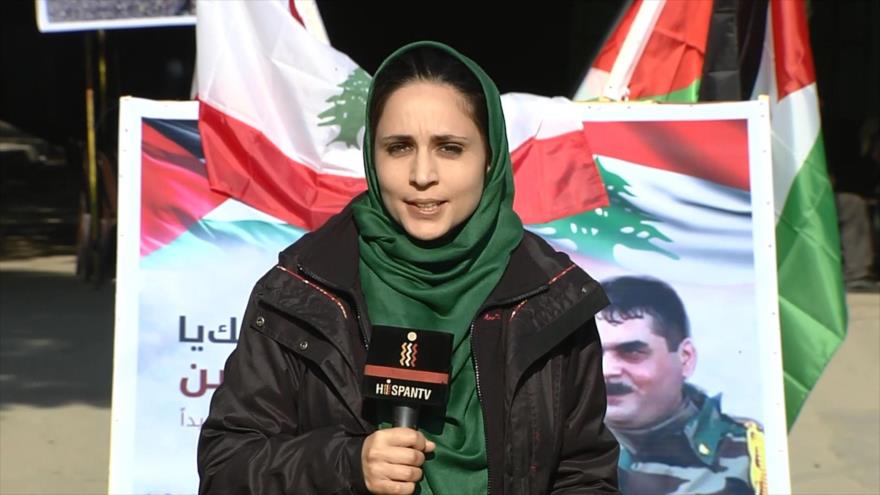 Las banderas palestinas y libanesas juntas por un mismo martirio y una misma causa, contra el régimen de Tel Aviv.