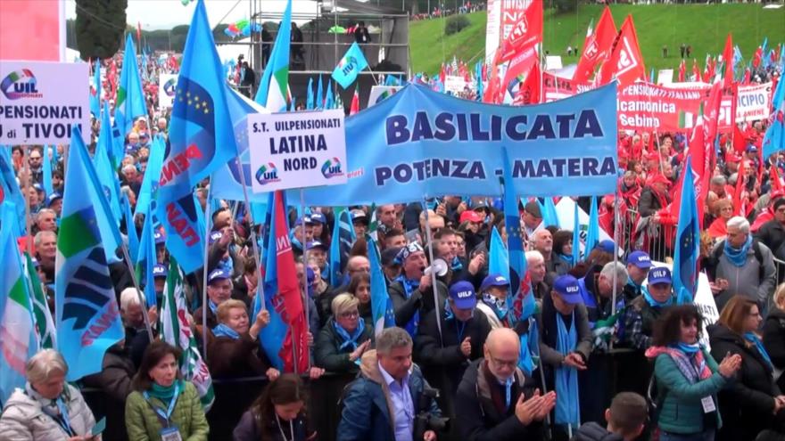 Los jubilados italianos se han reunido en el centro de Roma (capital), para protestar contra la total falta de atención recibida por parte del Gobierno que para financiar la controvertida nueva ley de ciudadanía, recortará de la bolsa de las pensiones más de 2200 millones de euros en los próximos tres años.