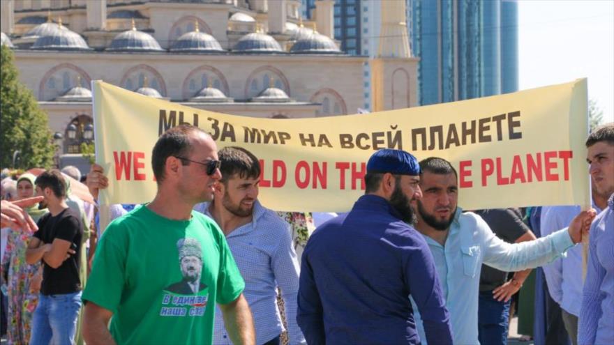 “Tanto yo como millones de personas en decenas de países exigimos a los líderes de las potencias mundiales que paren de una vez el derramamiento de sangre. Exigimos castigo para los culpables y una investigación internacional de estos crímenes de lesa humanidad”, ha declarado Kadyrov durante la protesta.